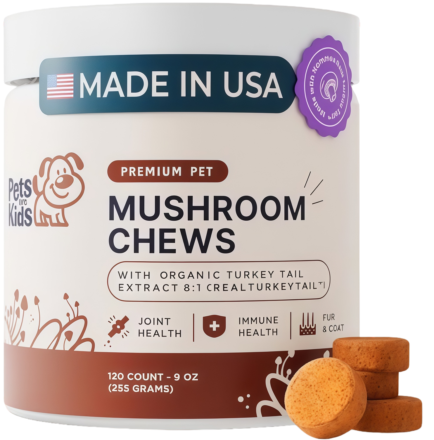 Dog Mushroom Chews are made from natural ingredients, and side effects are rare. However, some dogs may experience mild digestive upset or allergies. If any unusual symptoms appear, stop use and consult your veterinarian.